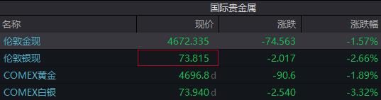 根源:Wind 贵金属价钱全体走矮,停止收稿时,现货黄金报4672.335美圆/盎司,跌幅1.57%;现货黑银报73.815美圆/盎司,跌幅2.66%;COMEX黄金报4696.8美圆/盎司,跌幅1.89%;COMEX黑银报73.94美圆/盎司,跌幅3.32%。